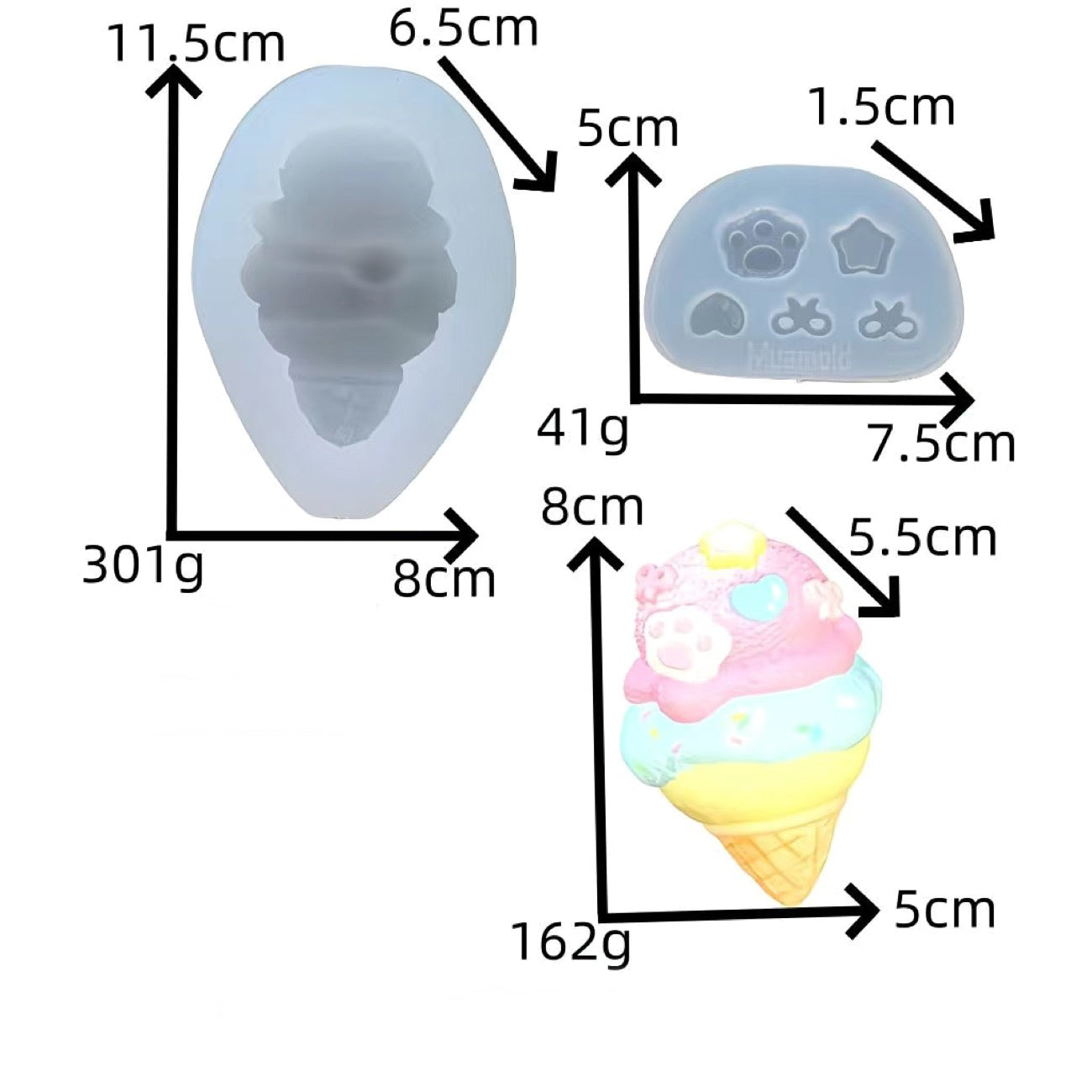 【例:かわいい動物シリーズ(子熊、うさぎ)】、【例:美味しそうなフードシリーズ(ハンバーガー、ドーナツ)】、【例:ミニマル図形シリーズ(立方体、星星)】など、お好みの鋳型をお選びいただけます。